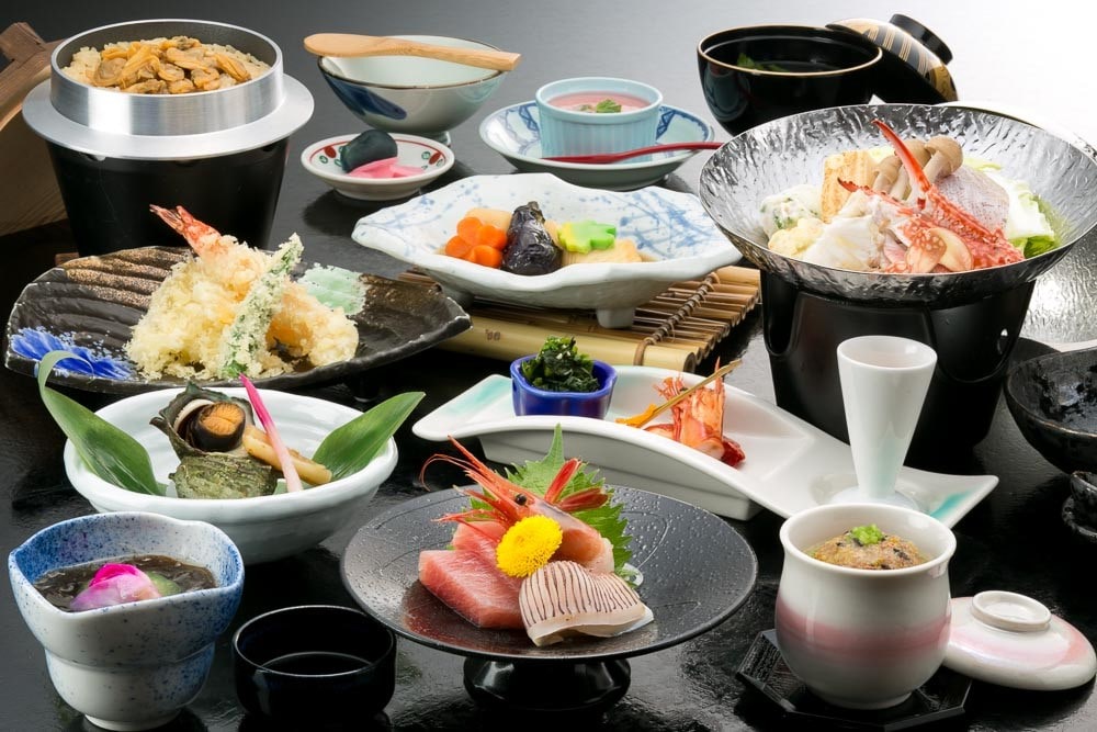 ランチでは、目にも華やかな伊勢海老や海老の旨味を凝縮した海老しんじょうなど、新鮮な海産物を丁寧に仕込んだ「会席料理」に舌鼓を打つことができます。