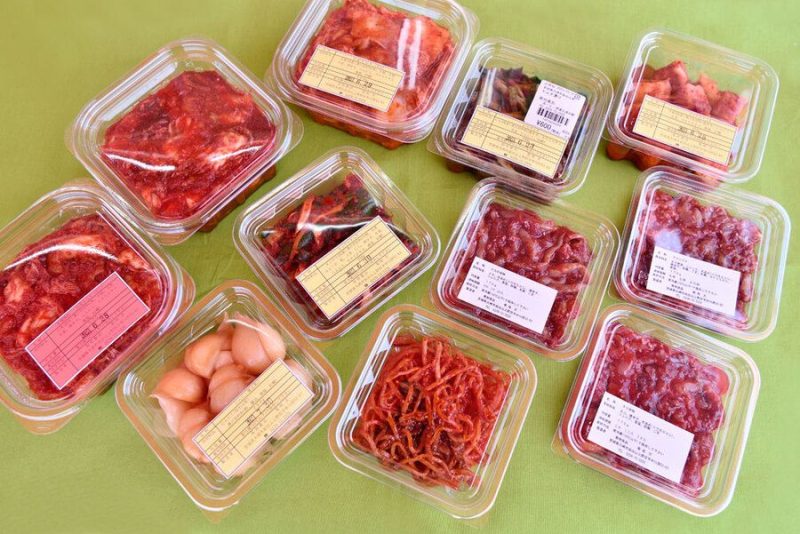 菊地食品のキムチは、地元の新鮮な野菜を使用し、手作りで丁寧に製造されています。白菜キムチ以外にも、きゅうりキムチやイカキムチ、チャンジャなど、種類が豊富に揃えられています。